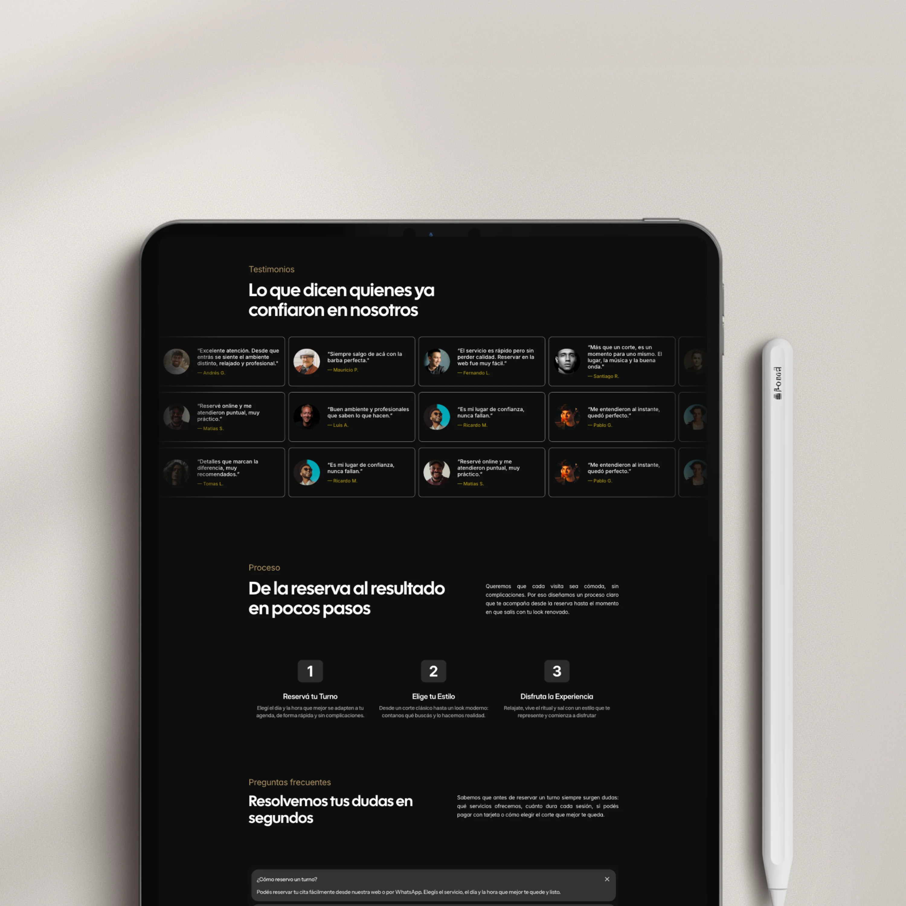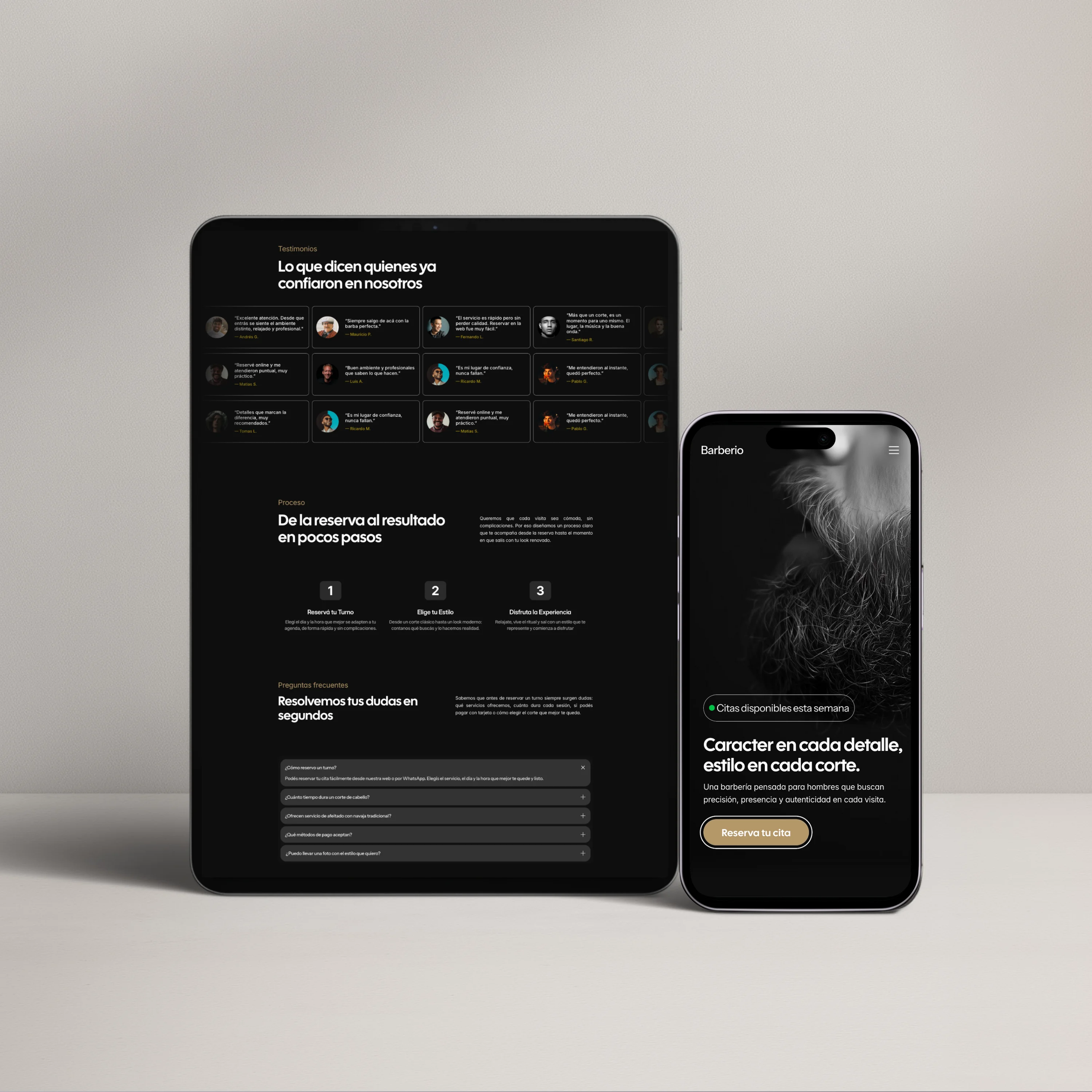 Un sitio web pensado para barberías que buscan transmitir identidad, confianza y estilo desde el primer contacto. La estructura está diseñada para presentar los servicios con claridad, explicar la forma de trabajar y reforzar la experiencia a través del equipo, la filosofía y las opiniones de quienes ya pasaron por el espacio.