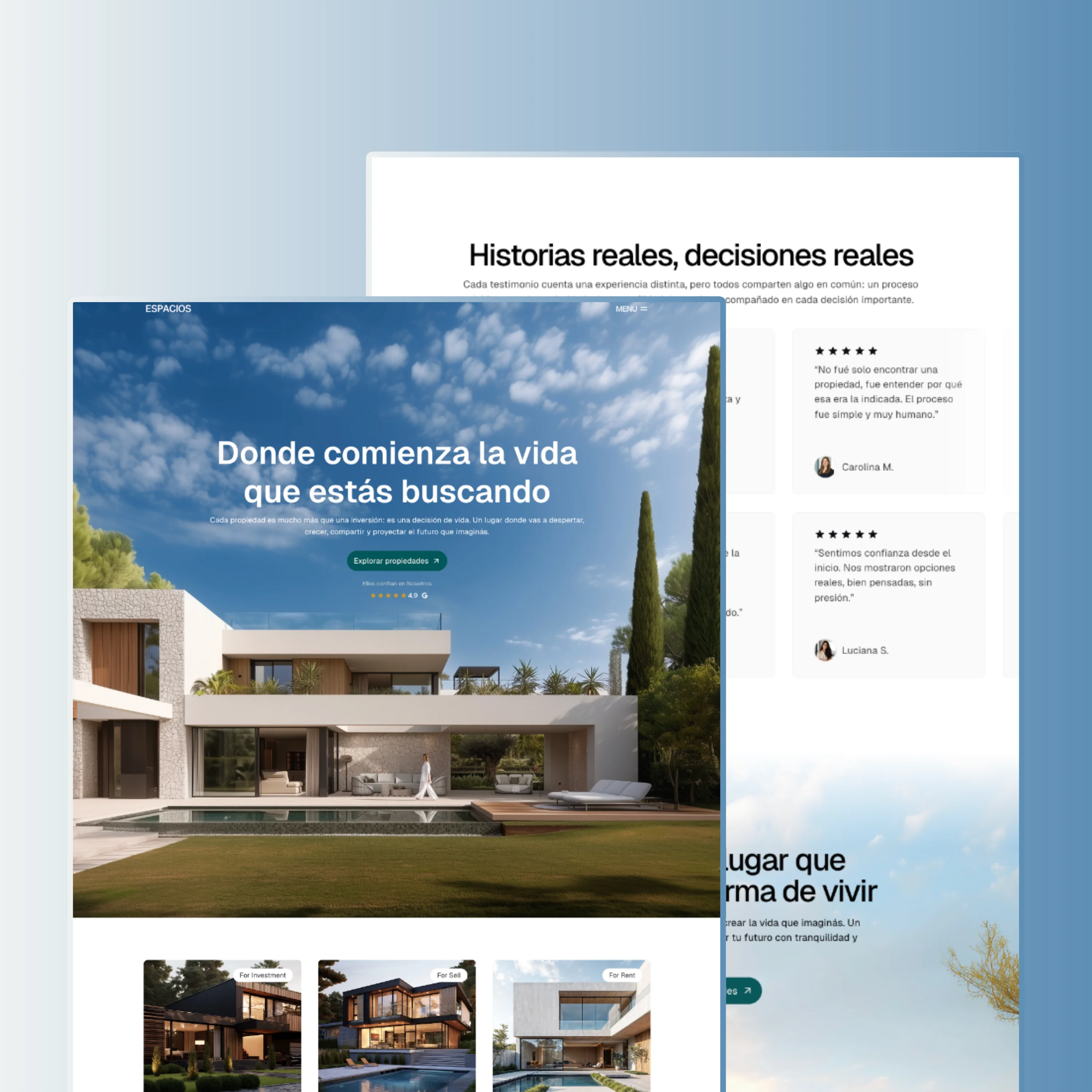 Un sitio web pensado para inmobiliarias que buscan transmitir confianza, claridad y profesionalismo desde el primer contacto. La estructura está diseñada para presentar las propiedades de forma ordenada, explicar el proceso de trabajo con transparencia y acompañar a las personas en una de las decisiones más importantes, generando seguridad en cada etapa.