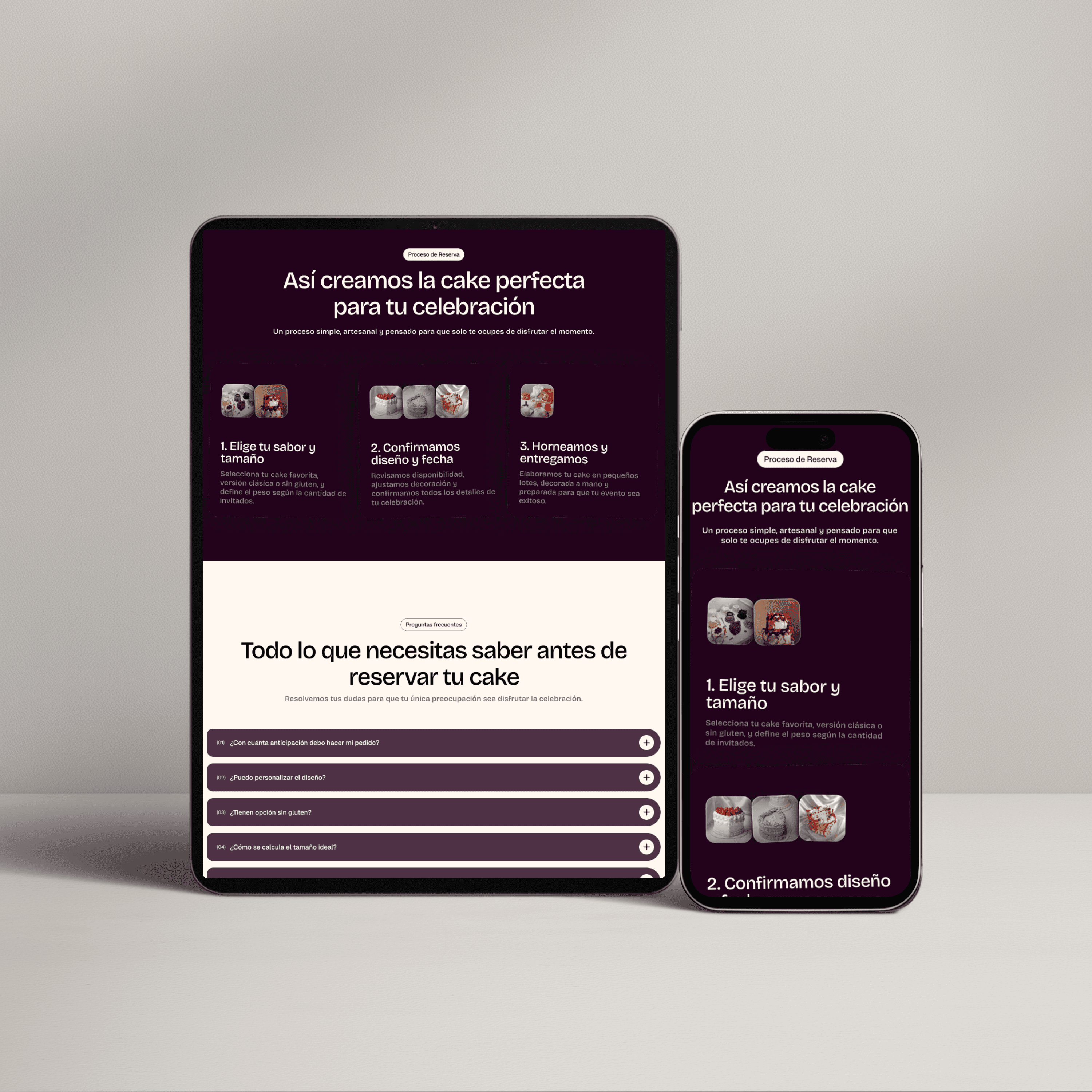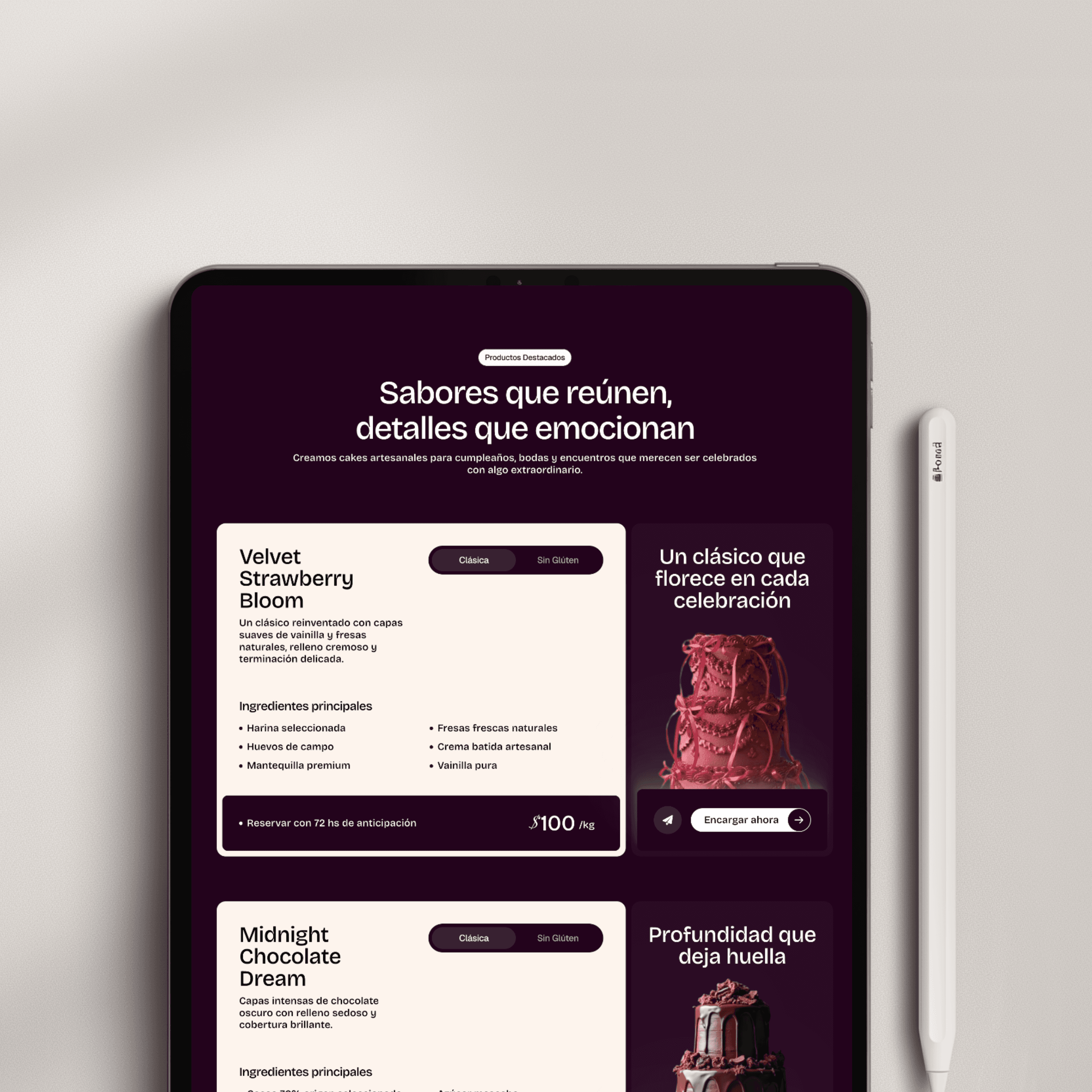 Una plantilla web profesional diseñada especialmente para pasteleras y reposteras independientes que desean mostrar sus creaciones con elegancia y convertir visitas en reservas.
