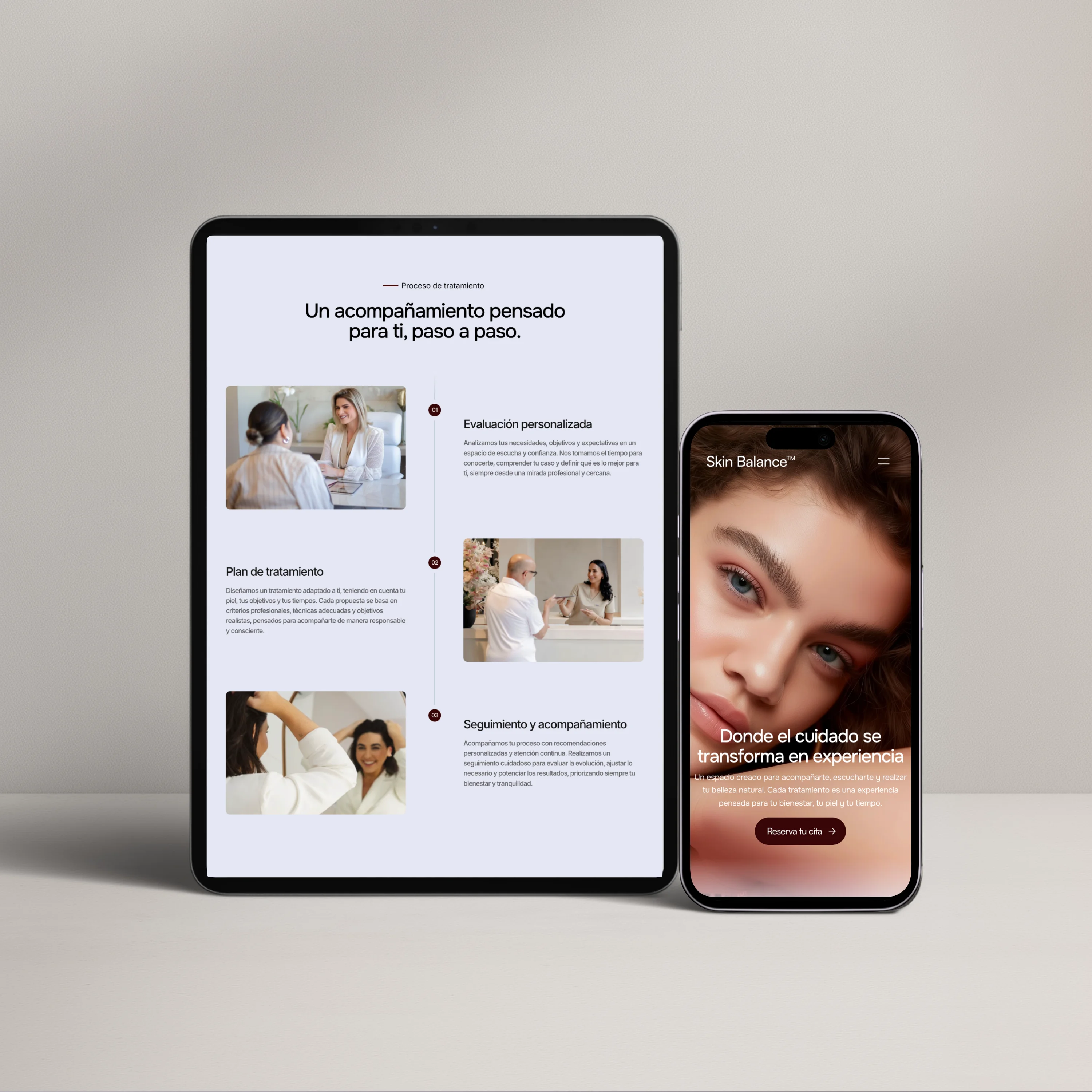 Un sitio web pensado para centros de estética que buscan transmitir confianza, profesionalismo y cuidado desde el primer contacto. La estructura está diseñada para presentar los servicios con claridad, acompañar el proceso de reserva y generar cercanía a través del equipo, los valores y la experiencia del centro.